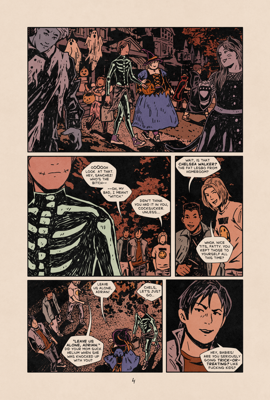 A 34-page horror comic. On Halloween night, 1994, two teenagers and their bully discover an uncomfortable secret about a girl they know.